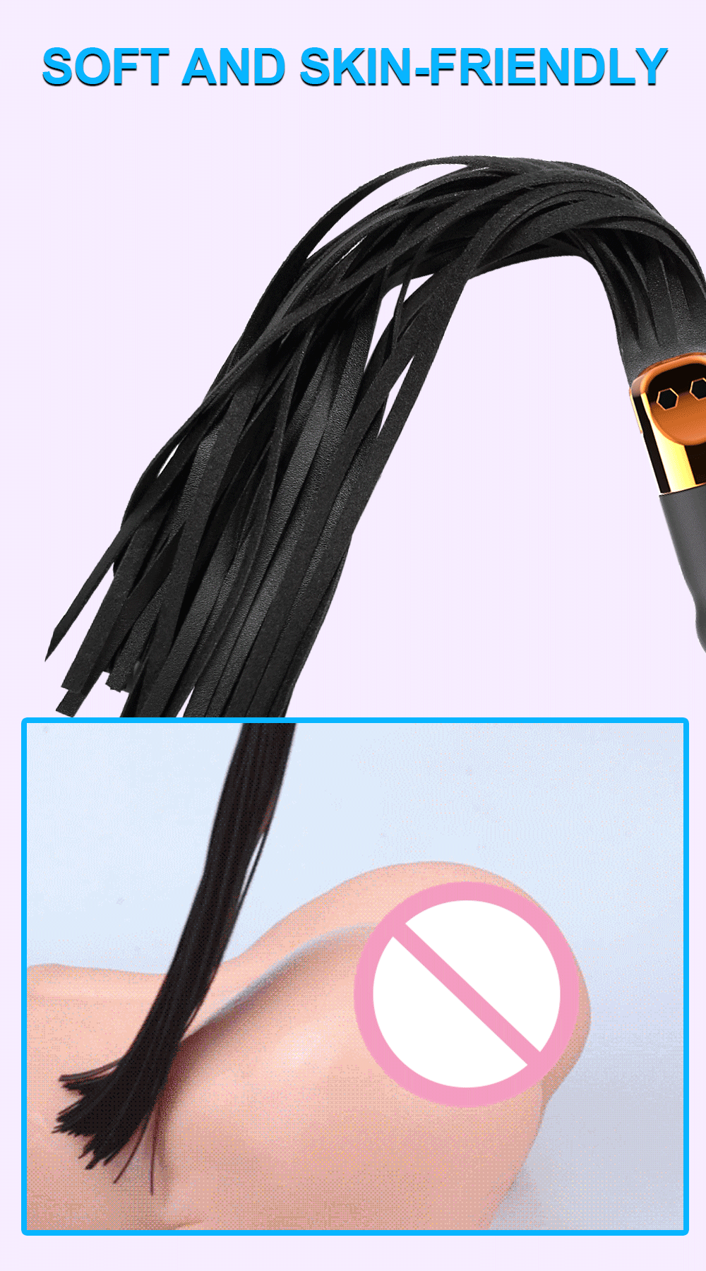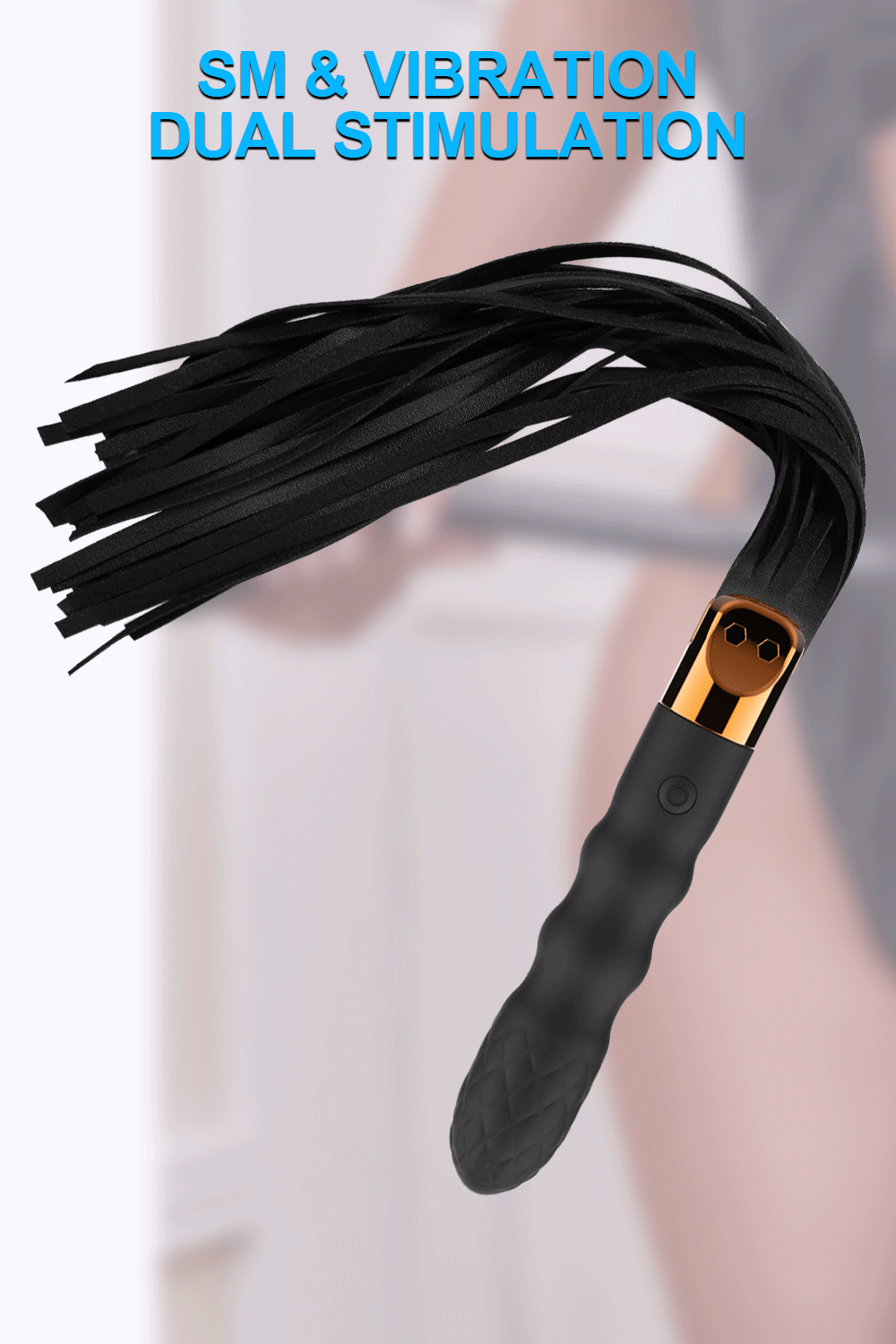 שוט עור רך עם ידית רוטטת בעיצוב אופנתי ואחיזה מונעת החלקה, וזנב ארוך ורך באורך כולל של 31.5 ס"מ. אידיאלי למשחקי BDSM, ספנקינג או כוויברטור וסטימולטור לדגדגן.